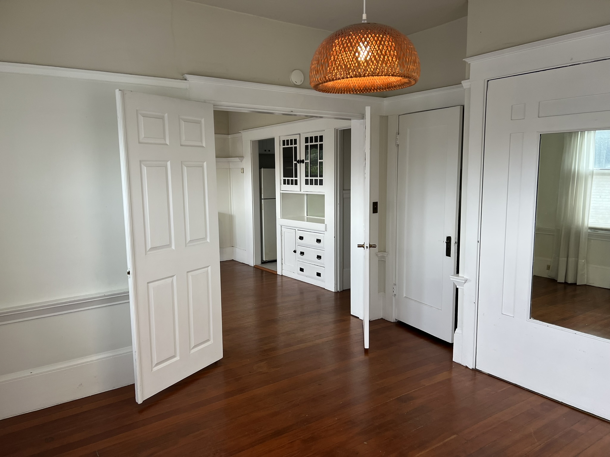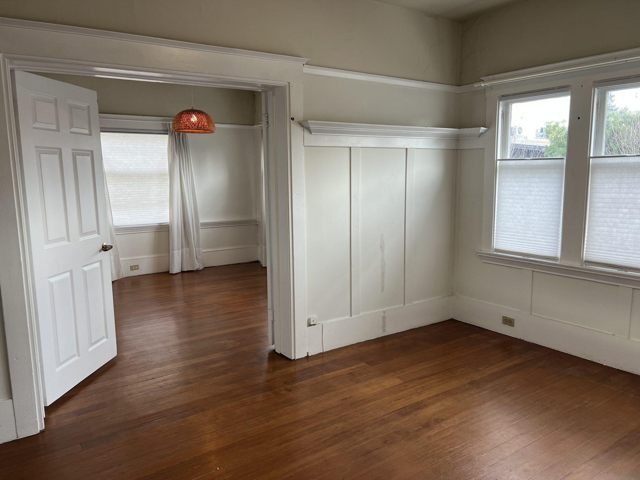 Beautiful, very large 1+ bedroom apartment in a charming 4-plex in the heart of Temescal. Enjoy the abundance of light and sunshine that pours in thru the original windows. The large bonus room is perfect for a home office or studio. Abundance of storage in 2 large closets plus original built-in cabinets in the living room. Hardwood floors thruout, updated kitchen, with dishwasher and washer/dryer. Located steps from all that Telegraph has to offer, but located on a charming residential street. 2 blocks from MacArthur BART, easy access to AC Transit & Freeways.